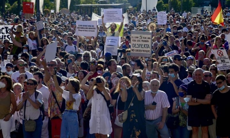 Los manifestantes se reunen en el centro de Madrid para protestar las restricciones. (Foto: AFP) |
