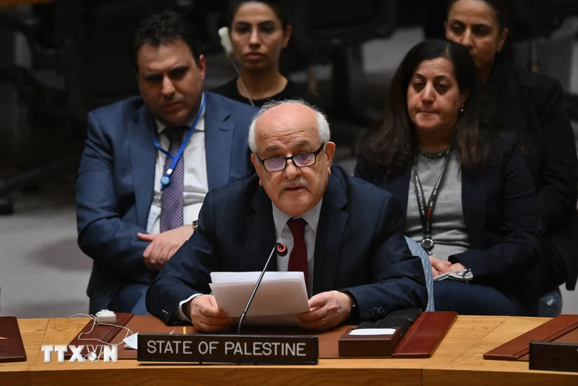 El enviado especial palestino ante la ONU, Riyad Mansour. (Foto: VNA) |