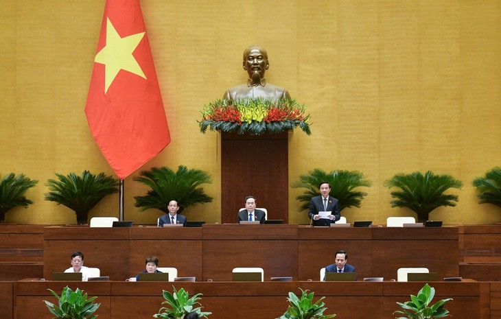 El vicepresidente de la Asamblea Nacional, Nguyen Khac Dinh, preside la sesión del 27 de mayo. (Foto: VOV) |