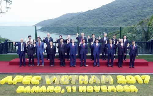 El presidente vietnamita, Tran Dai Quang se fotografía junto con otros jefes de las delegaciones participantes en la XXV Conferencia de Líderes Económicos del APEC (Foto: VNA) |