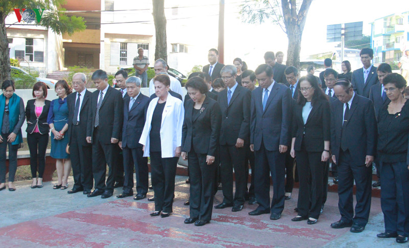 (VOVworld) – La jefa de la Asamblea Nacional de Vietnam, Nguyen Thi Kim Ngan, ofrendó este martes flores en el Monumento al presidente Ho Chi Minh, en el parque de la Paz, en La Habana, durante su visita allí para asistir a las honras fúnebres de Fidel Castro. La obra es el símbolo de la amistad especial entre los dos países, cultivada y alimentada a lo largo de su historia.
