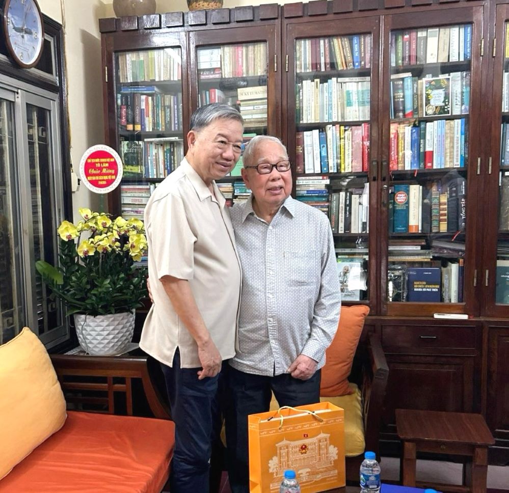 El presidente To Lam (i) junto con el periodista Phan Quang, ex presidente de la Asociación de Periodistas y ex director general de la Voz de Vietnam. (Foto: VOV) |