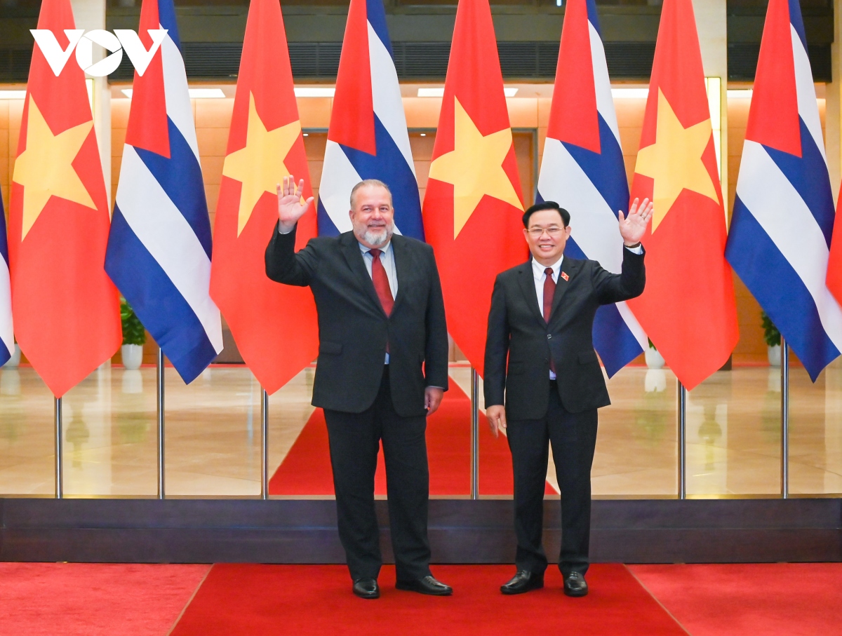 El presidente de la Asamblea Nacional Vuong Dinh Hue (d) y el primer ministro de Cuba, Manuel Marrero Cruz. |