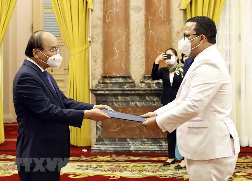 En su encuentro con el primer embajador de la República Dominicana en Hanói, Jaime Yorquis Francisco Rodríguez, el presidente vietnamita aplaudió la apertura de la misión diplomática de ese país aquí y expresó su deseo de que las dos partes se esfuercen más por implementar las medidas destinadas a elevar la eficiencia de la cooperación multisectorial, ante todo con el intercambio de delegaciones de alto nivel y con la organización de actividades de promoción comercial bilateral.