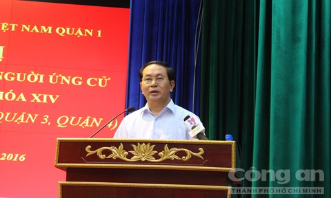 ![]() El presidente Tran Dai Quang en el encuentro con electores de Ciudad Ho Chi Minh la mañana del 9 de mayo