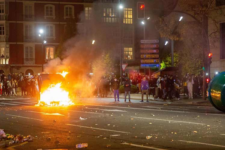 Manifestantes españoles queman vehículos de fuerzas de seguridad (Foto: prensa latina) |