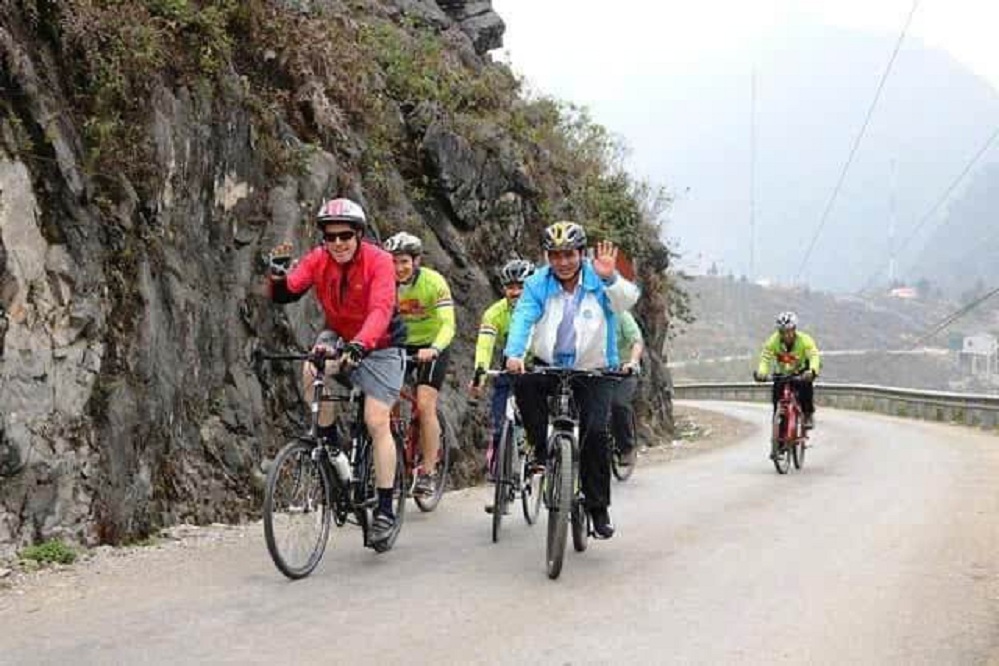 Turistas en una excursión en bicicleta por Ha Giang. (Foto: Vinh Phong) |