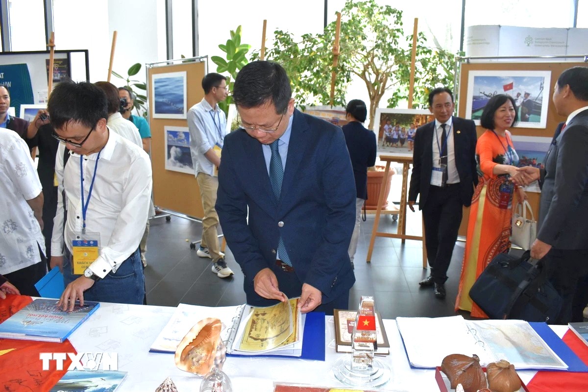En el marco de la conferencia se efectúa una exposición fotográfica sobre las islas y mares de Vietnam (Foto: VNA) |