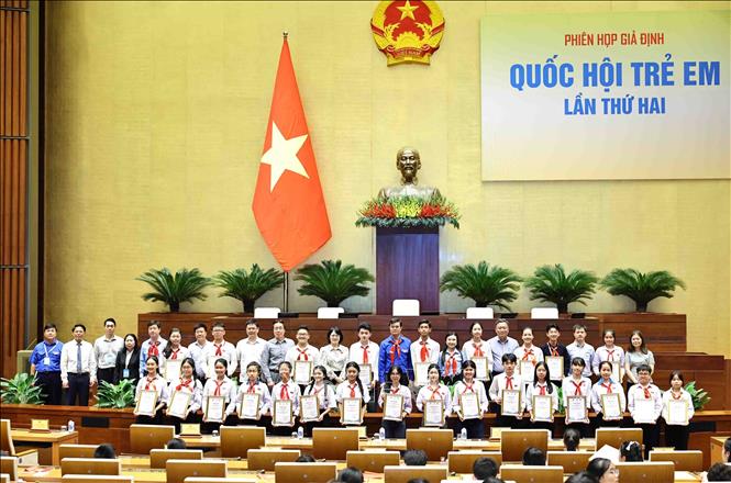 Delegados a la segunda reunión de la “Asamblea Nacional de los Niños” 2024. (Foto: VNA) |