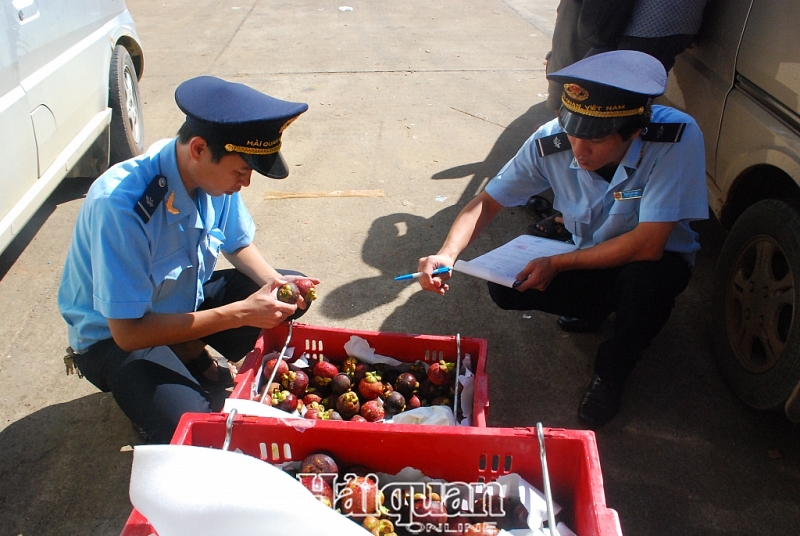 El Servicio de Aduanas de Coc Nam, desde las 10 y media hasta las 24 horas del viernes, permitió la salida de ocho contenedores de productos agrícolas, principalmente frutas frescas, al país vecino.
