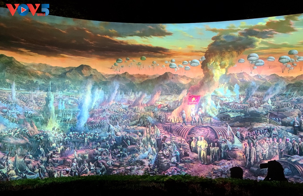 Con una combinación perfecta entre técnicas, colores y sonidos, la pintura panorámica recrea de manera vívida y realista las cuatro fases de combate en la batalla de Dien Bien Phu, a través de la cual reflejan claramente las dificultades y penalidades del ejército y el pueblo vietnamitas durante 56 días y noches para lograr resonante hazaña.