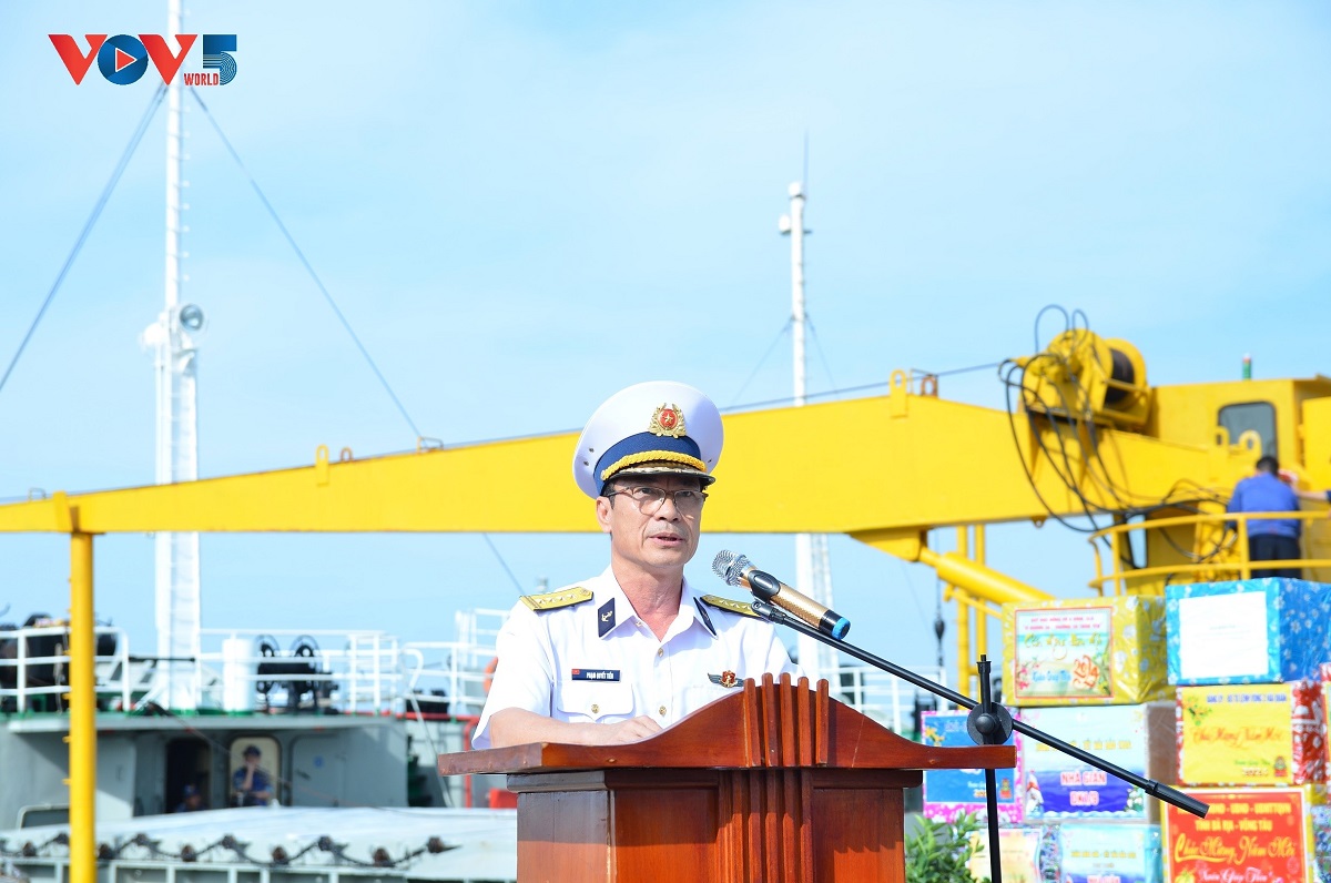 Al respecto, el primer coronel Pham Quyet Tien, subcomandante de la Región Naval 2, informó: Cada vez que llega el Tet y la primavera, la gente de todo el país expresa su más cálido afecto a los oficiales y soldados de servicio en la frontera y en las islas. El grupo de trabajo tiene el honor de transmitir esos sentimientos a los combatientes en la vanguardia de la Patria, motivándoles a superar las dificultades y completar con éxito las tareas asignadas”.