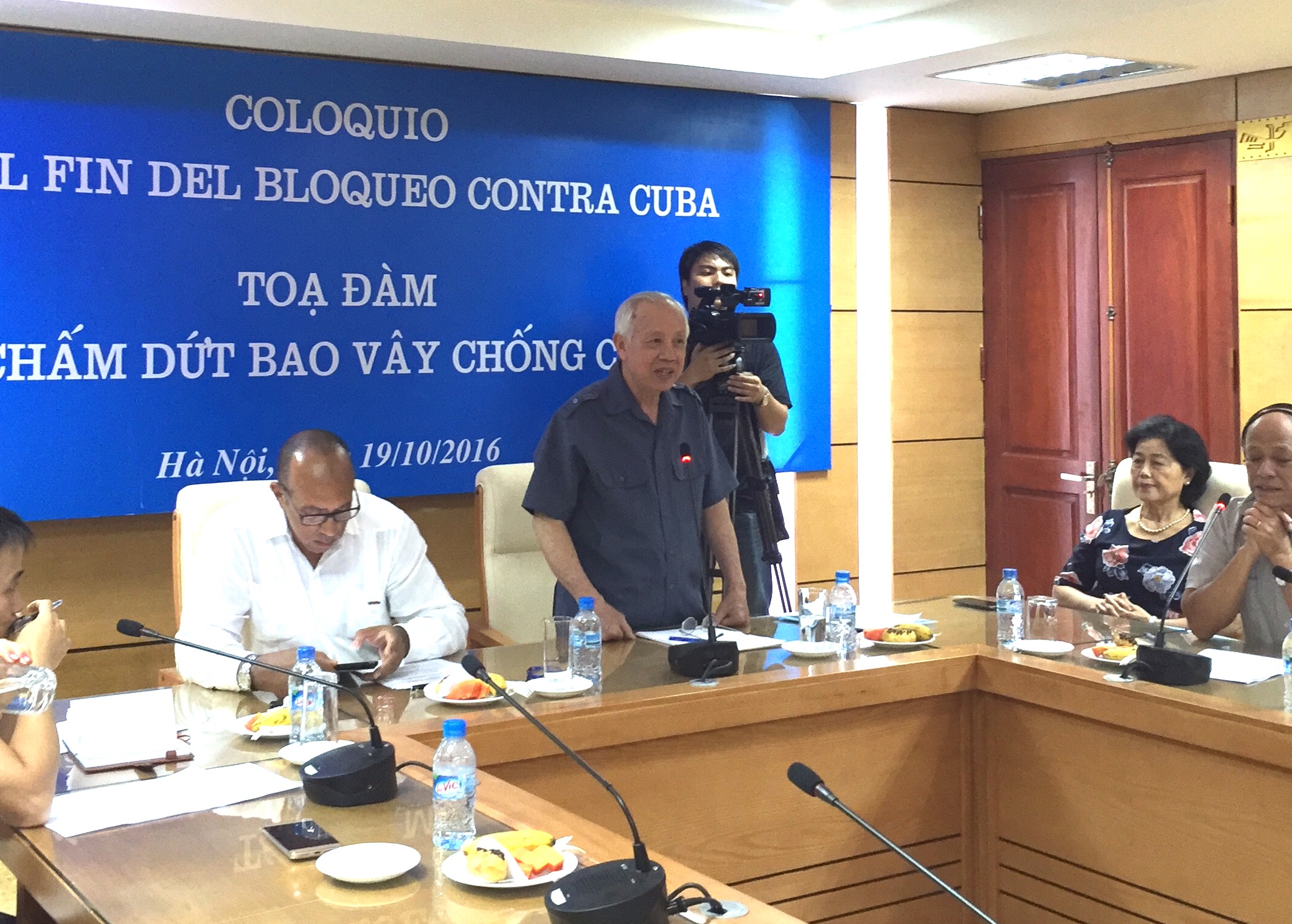 ![]() El vicepresidente permanente de la Asociación de Amistad Vietnam-Cuba, Nguyen Duy Cuong interviene en una actividad de solidaridad con el pueblo cubano