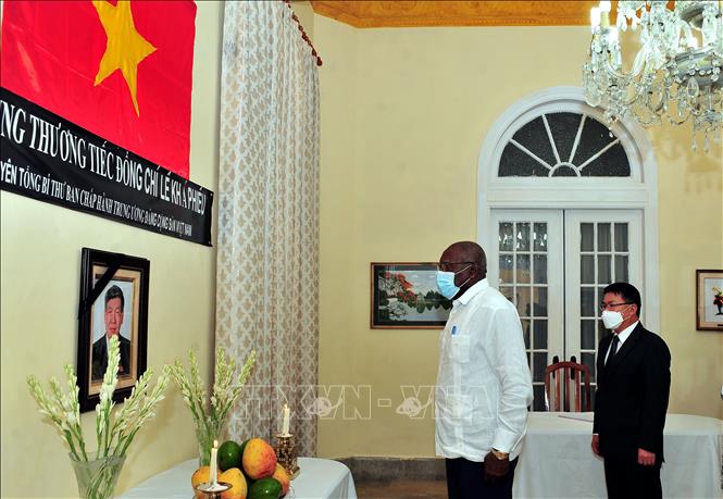 El acto contó con la participación del vicepresidente cubano, Salvador Valdés Mesa, quien escribió en el libro de condolencias que el exdirigente vietnamita se recordará para siempre como un gran contribuidor a las relaciones de solidaridad, cooperación y amistad especial entre Vietnam y Cuba.