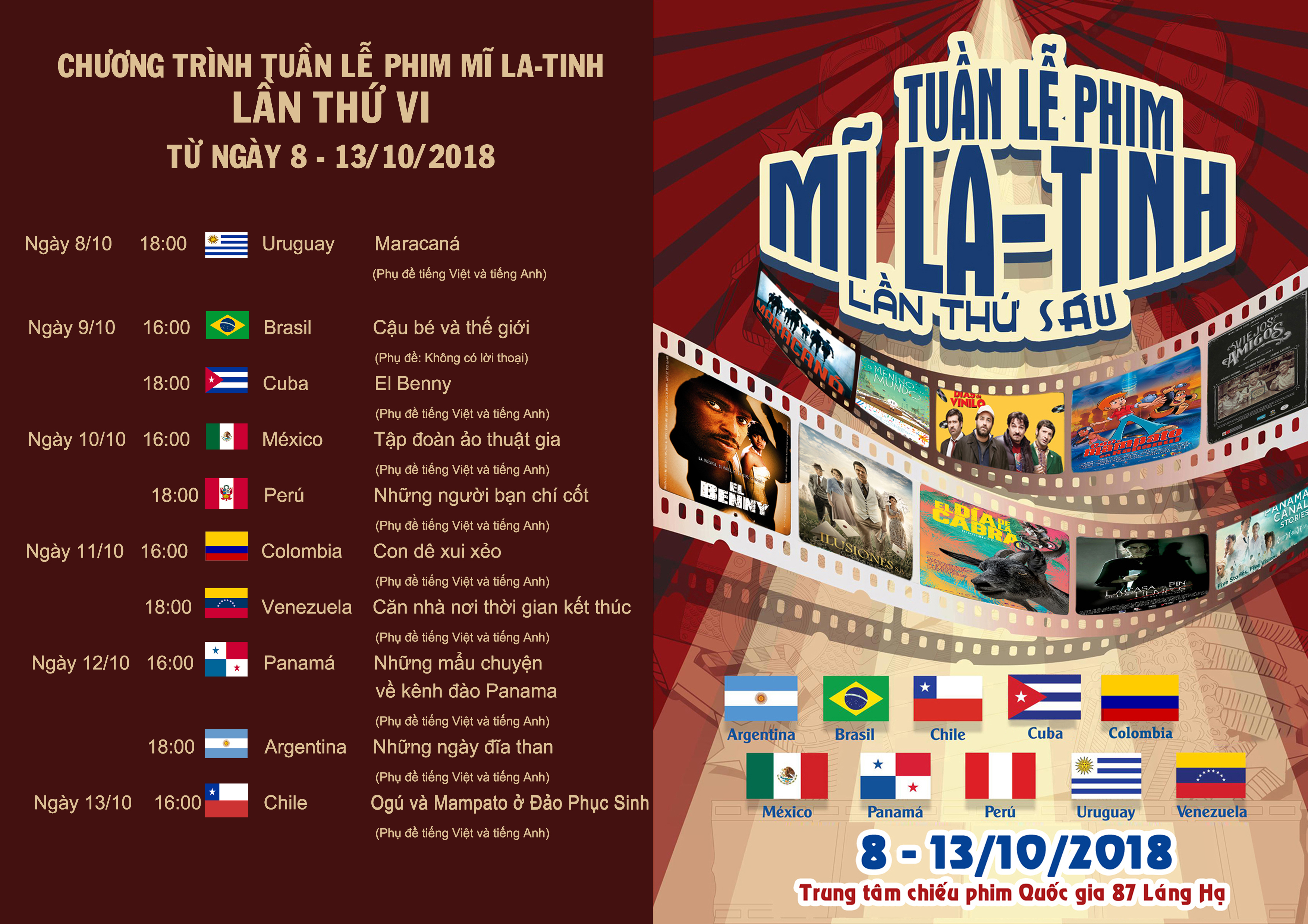 Se trata de la sexta edición de este acontecimiento que se celebra en Vietnam. En las anteriores se presentaron películas populares de Sudamérica tales como “Amor y Béisbol” del cine venezolano o “Bella Vida” de Chile.