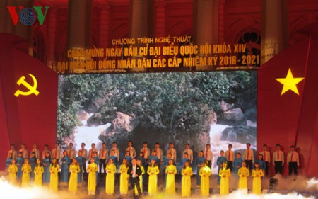 (VOVworld) – El programa artístico titulado “La jornada festiva del país” tuvo lugar este 21 de mayo en la Plaza de la Revolución de Agosto, en la capital de Hanoi, para saludar las elecciones de la Asamblea Nacional de Vietnam, XIV legislatura, y de los Consejos Populares de diferentes niveles, mandato 2016-2021.
