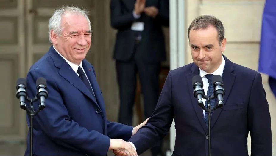 Sébastien Lecornu asume oficialmente el cargo de primer ministro de Francia, acompañado por su predecesor François Bayrou. (Foto: Le Figaro) |