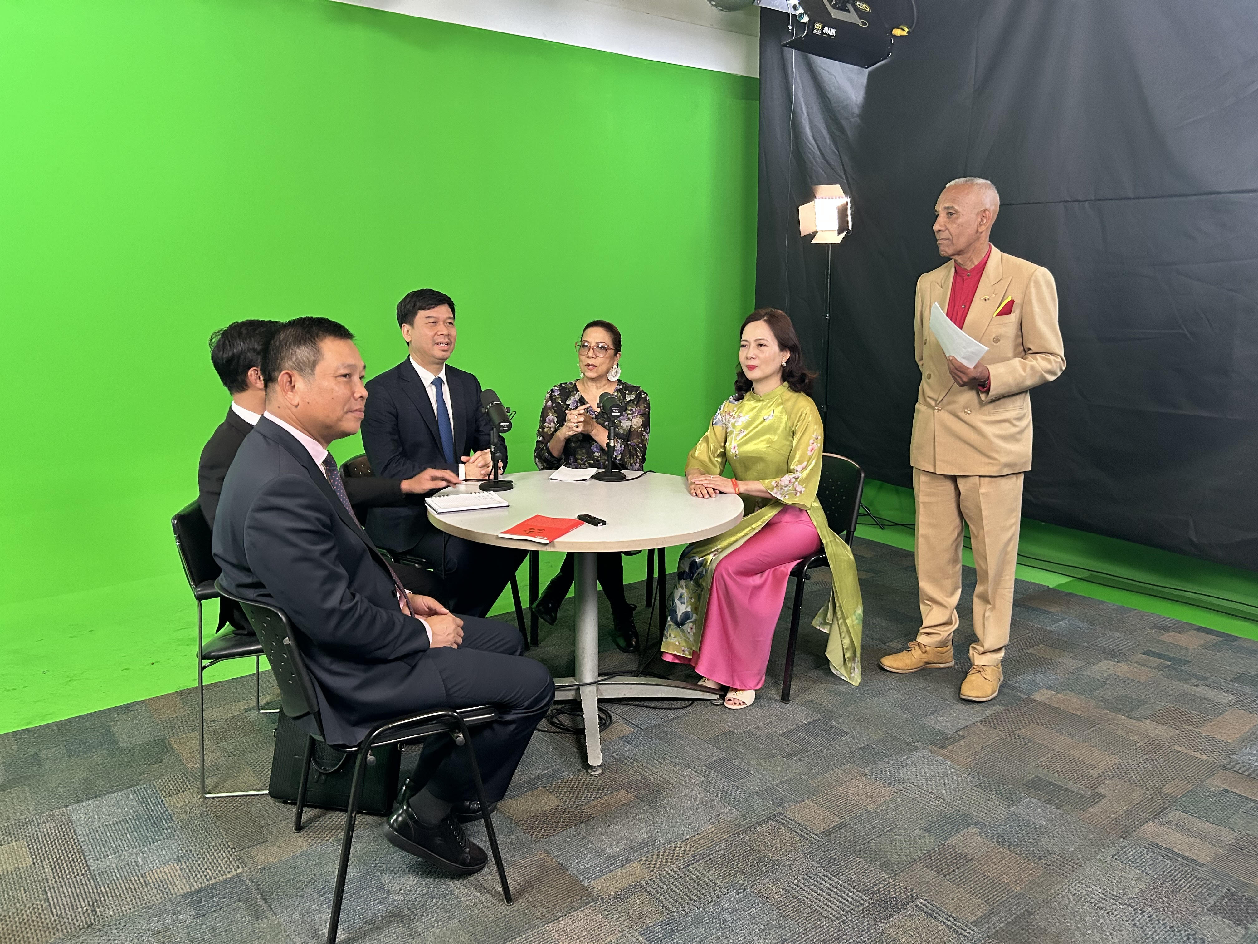 El vicepresidente de la Voz de Vietnam, Ngo Minh Hien, participa en un programa en directo emitido desde el estudio virtual de LAUICOM. (Foto: VOV) |
