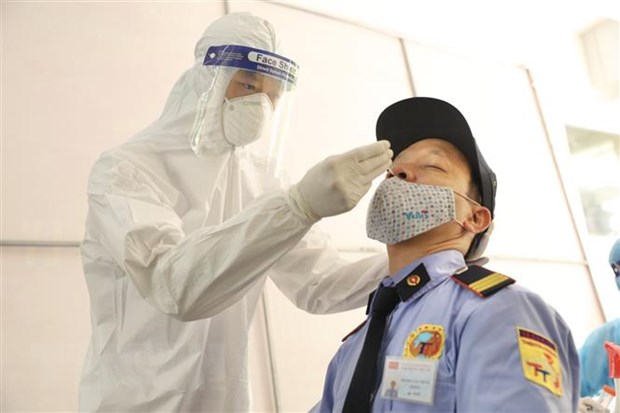 Un profesional sanitario está realizando pruebas para detectar el covid-19 en el distrito de Thanh Xuan, Hanói. (Foto: VNA) |