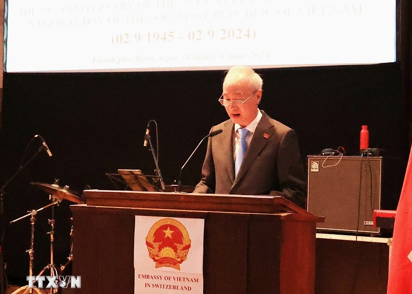 En su intervención el embajador vietnamita en Berna, Phung The Long destacó el significado de la Revolución de Agosto de 1945, bajo el liderazgo del Partido Comunista de Vietnam y el presidente Ho Chi Minh, enfatizando la Declaración de Independencia anunciada por el tío Ho el 2 de septiembre de 1945 y que dio origen a la República Democrática de Vietnam, hoy República Socialista de Vietnam.