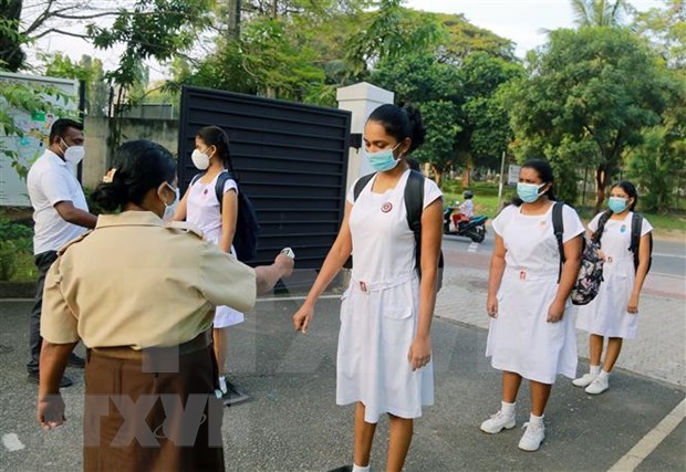 La medición de la temperatura corporal para controlar el covid-19 en una escuela en Sri Lanka, el 25 de enero de 2021. (Foto: Xinhua/VNA) |