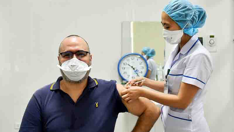 Un diplomático extranjero recibe la inyección de la vacuna contra el covid-19 en Vietnam. (Foto: suckhoedoisong.vn) |