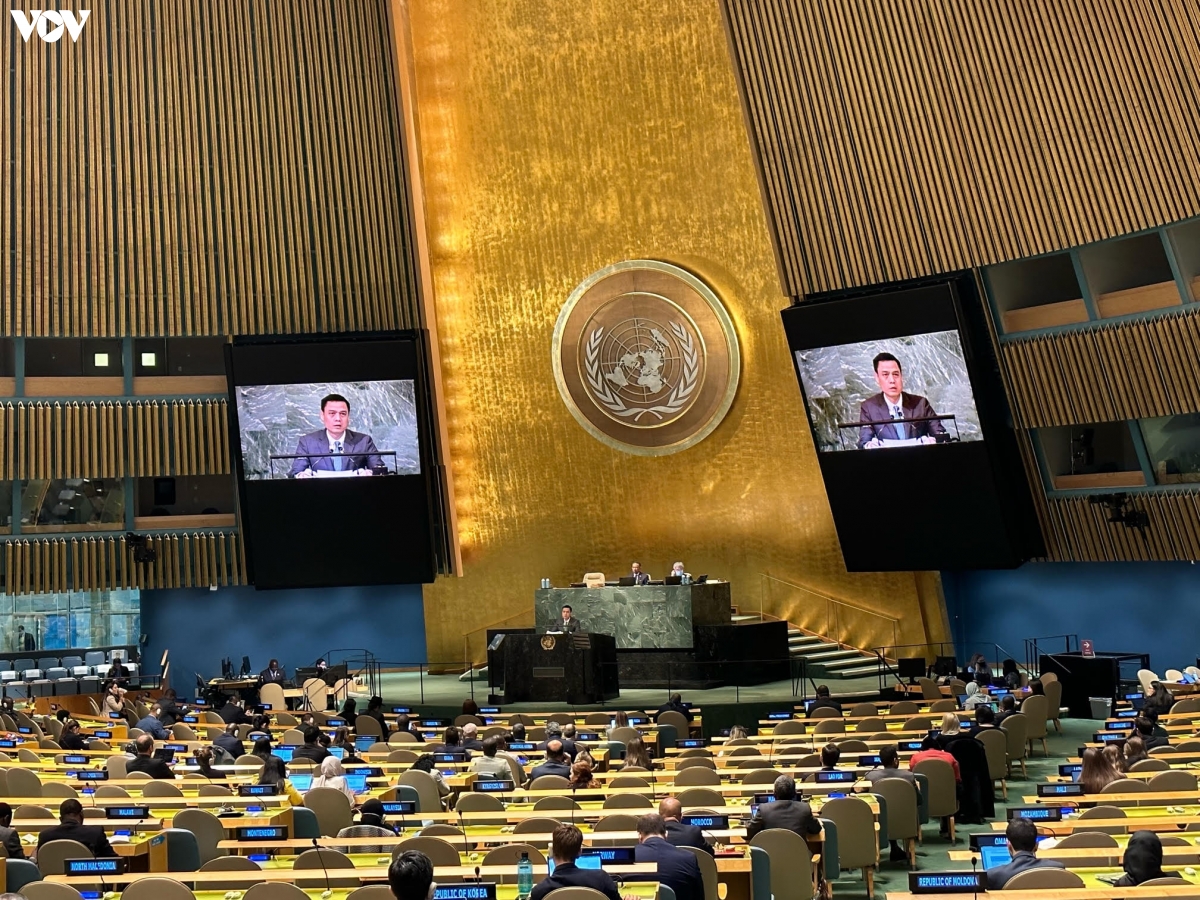 El embajador Dang Hoang Giang, Jefe de la delegación de Vietnam ante la ONU, habla en la sesión de debate. (Foto: Corresponsal de la VOV en Estados Unidos) |