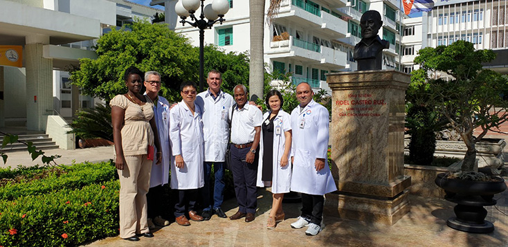 Médicos cubanos y vietnamitas se fotografían juntos al lado del busto del líder Fidel Castro colocado en el Hospital de Amistad Vietnam-Cuba Dong Hoi (Foto: baoquangbinh.vn) |