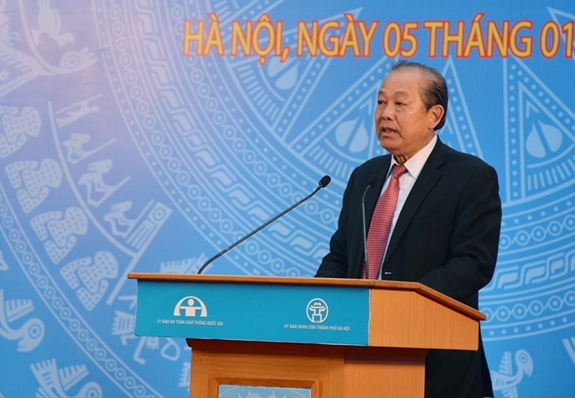 El viceprimer ministro y presidente del Comité Nacional para la Seguridad de Tráfico de Vietnam, Truong Hoa Binh en la reunón (Foto: qdnd.vn) |
