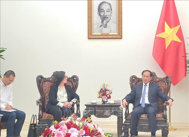 El viceprimer ministro y ministro de Relaciones Exteriores de Vietnam, Bui Thanh Son, y la vicepresidenta del Banco Mundial, Manuela Ferro. (Foto: VNA) |