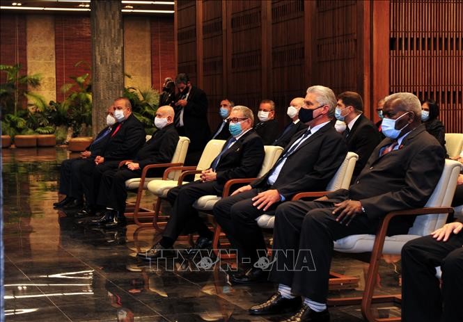 Los altos dirigentes de Cuba en la ceremonia (Foto: VNA) |