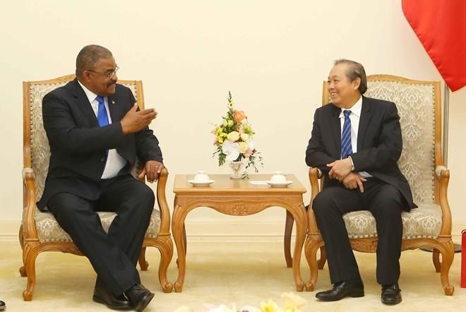 El dirigente vietnamita destacó los lazos especiales cada vez más reforzados entre Hanói y La Habana, y afirmó el apoyo nacional a la consolidación de la amistad y la cooperación entre los sistemas de tribunales de ambos países cumpliendo con el memorando de entendimiento sobre la colaboración sectorial firmado en septiembre de 2013.