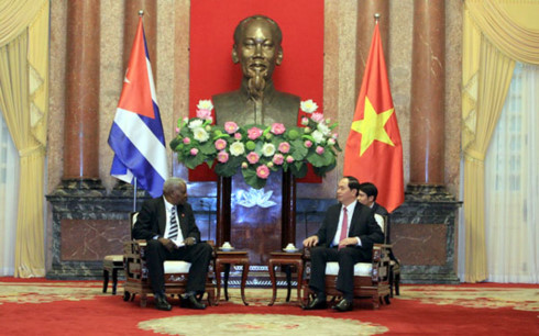 (VOVWORLD) - Vietnam está decidido a apoyar y fortalecer aún más las relaciones de solidaridad especial y cooperación integral entre los dos países. Así lo afirmó el presidente Tran Dai Quang al reunirse este 12 de junio en Hanoi con el líder de la Asamblea Nacional del Poder Popular de Cuba, Esteban Lazo Hernández.