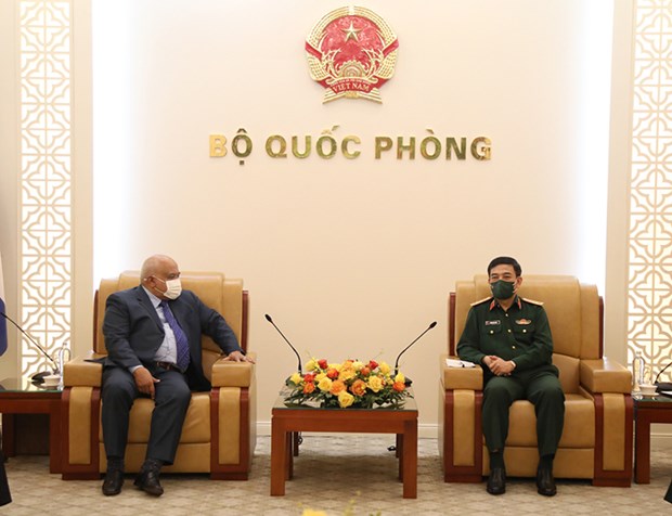 El ministro de Defensa vietnamita, Phan Van Giang (d.), y el embajador cubano en Hanói, Orlando Nicolás Hernández Guillén. (Foto: Ministerio de Defensa de Vietnam) |