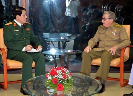 La delegación, encabezada por el coronel general Luong Cuong, secretario del Comité Central del Partido Comunista de Vietnam y jefe de la Dirección Política General del Ejército Popular de la nación indochina, se reunió con el primer secretario del Comité Central del Partido Comunista de Cuba (PCC) Raúl Castro en La Habana el 28 de noviembre.