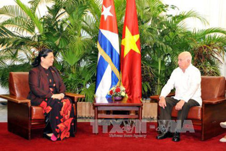 (VOVworld) – Como parte de su actual agenda de trabajo en Cuba, la vicepresidenta de la Asamblea Nacional de Vietnam Tong Thi Phong, se entrevistó con el segundo secretario del Partido Comunista y vicepresidente del país caribeño, José Ramón Machado Ventura. También se reunió con la presidenta del Instituto Cubano de Amistad con los Pueblos (ICAP), Kenia Serrano.