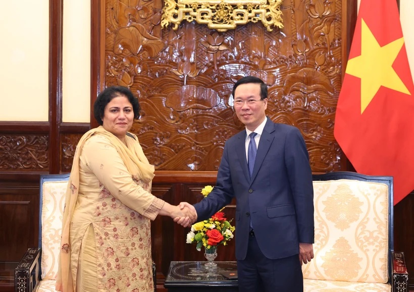 El presidente de Vietnam, Vo Van Thuong, recibe a Samina Mehtab, embajadora de Pakistán en Hanói. (Foto: VNA) |