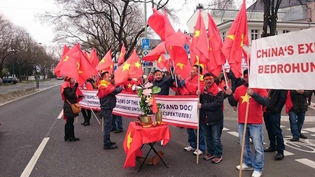![]() Manifestantes vietnamitas ante la embajada china en Frankfurt, Alemania |