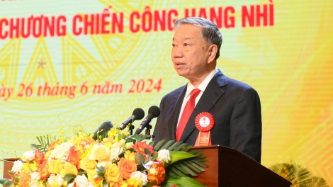 (VOVWORLD) - La conmemoración del 70º aniversario del Día Tradicional de la Técnica Profesional de la Seguridad Pública del Pueblo (1 de julio de 1954 - 1 de julio de 2024) y la ceremonia de recibimiento de la Orden de Mérito de Segunda categoría tuvieron lugar hoy en Hanói en presencia del presidente del país, To Lam.