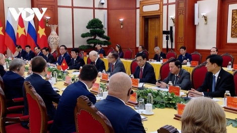 (VOVWORLD) - El secretario general del Partido Comunista de Vietnam, Nguyen Phu Trong, se reunió hoy en Hanói con el presidente ruso, Vladimir Putin, quien se encuentra en visita de Estado en este país.