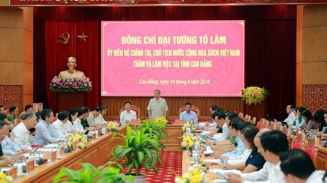 (VOVWORLD) - El presidente To Lam sostuvo el lunes una sesión de trabajo con el Comité del Partido de la provincia de Cao Bang sobre temas claves como la defensa y seguridad nacional, la reforma judicial, los asuntos exteriores, el desarrollo socioeconómico y la construcción del Partido.