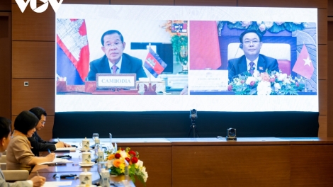 (VOVWORLD) - El líder de la Asamblea Nacional de Vietnam, Vuong Dinh Hue, conversó hoy por medios interactivos con Hun Sen, presidente del Partido Popular y titular del Senado de Camboya.