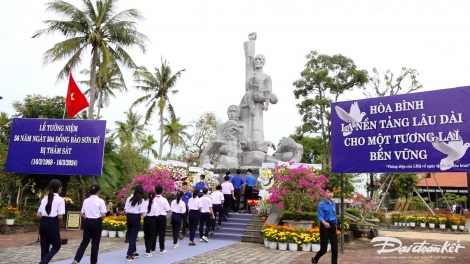 (VOVWORLD) - El Departamento de Cultura, Deportes y Turismo de la provincia de Quang Ngai organizó hoy una ceremonia en memoria de las 504 víctimas de la masacre de Son My en su 56.º aniversario (16 de marzo de 1968 - 16 de marzo de 2024).
