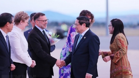 (VOVWORLD) - El primer ministro Pham Minh Chinh inició este jueves su visita de trabajo a Australia por invitación de su homólogo, Anthony Albanese. Esta es la primera visita oficial de Minh Chinh a ese país de Oceanía en su nuevo cargo y también la primera de un líder del Ejecutivo de Vietnam a Australia después de más de 7 años.
