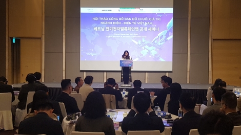 (VOVWORLD) - El Departamento de Promoción Comercial del Ministerio de Industria y Comercio de Vietnam y la Agencia de Promoción del Comercio y la Inversión de Corea (KOTRA) presentaron hoy en Hanói el Mapa de la cadena de valor del sector eléctrico y electrónico de Vietnam y el Directorio de empresas vinculadas, elaborados tras un análisis en profundidad de la industria eléctrica y electrónica (E&E) del país.