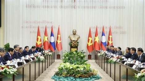 (VOVWORLD) - El secretario general del Partido Comunista de Vietnam, To Lam, y el secretario general del Partido Popular Revolucionario Lao y presidente de ese país, Thongloun Sisoulith, coincidieron en la necesidad de continuar fortaleciendo la gran amistad, la solidaridad especial, la cooperación integral y la conexión estratégica entre Vietnam y Laos a través de los mecanismos de cooperación existentes y los nuevos.
