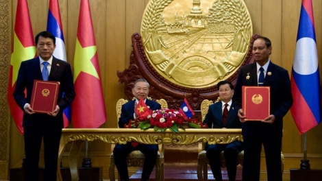 (VOVWORLD) - El secretario general del Partido Comunista, To Lam, instó a que los Primeros Ministros de Vietnam y Laos continúen orientando a las agencias pertinentes de ambos países para coordinar de manera estrecha y ejecutar activamente los compromisos y acuerdos alcanzados por sus líderes de alto nivel.