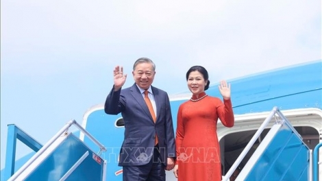 (VOVWORLD) - El secretario general del Partido Comunista de Vietnam (PCV), To Lam, y su esposa, Ngo Phuong Ly, partieron hoy de Hanói rumbo a Laos para realizar una visita de Estado, participar en los actos conmemorativos del 50.º aniversario del Día Nacional laosiano y copresidir la reunión de alto nivel entre los partidos gobernantes de ambos países.