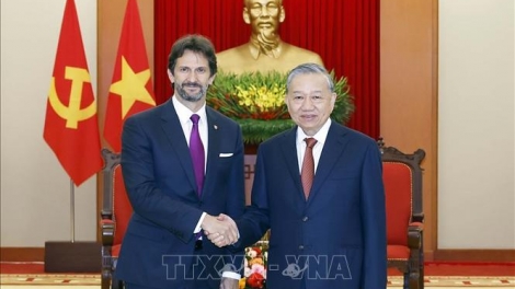 (VOVWORLD) - El secretario general del Partido Comunista (PCV), To Lam, recibió al viceprimer ministro y ministro de Defensa de Eslovaquia, Robert Kaliňák, en el marco de la visita oficial de este último a Vietnam.