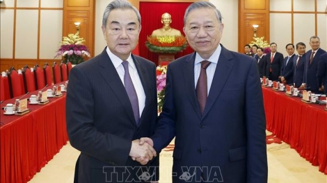(VOVWORLD) - El secretario general del Partido Comunista de Vietnam (PCV), To Lam, recibió la tarde del 16 de marzo en Hanói al ministro de Asuntos Exteriores de China, Wang Yi; al ministro de Seguridad Pública, Wang Xiaohong; y al ministro de Defensa, Dong Jun, con motivo de la primera Conferencia del Diálogo Estratégico 3+3 entre los dos países a nivel de ministros de Asuntos Exteriores, Defensa y Seguridad Pública.